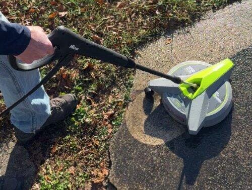 One hundred percent great product. I use it with a 3200 psi Ego Battery pressure washer. A fantastic deep clean is achieved with the 12-inch size on Ego's Turbo setting, which works best. I sometimes pretreat the concrete with "30 Second" cleanser, but it's probably not necessary. My long driveway hadn't been cleaned in 25 years, with numerous reminders from truck tires and other vehicles. After receiving a bid for cleaning, I purchased the Ego 3200 psi dual battery power washer and am going to town with this Hiclean surface cleaner with wheels. It seems very well-made and has a rather sturdy construction.Would purchase again.
